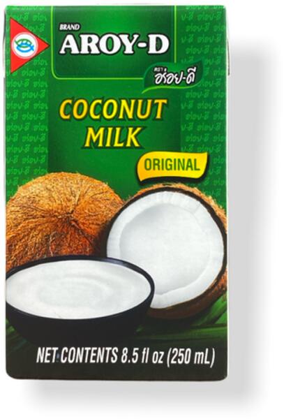 100% természetes összetevők, amelyek garantálják az egészséges és ízletes étkezést. Az Aroy-D Kókusztej UHT kiszerelése lehetővé teszi, hogy kisebb adagokban is élvezhesd a kókusztej nyújtotta gazdag ízélményt, anélkül, hogy aggódnod kellene a felesleges maradék miatt. Ez a kiszerelés tökéletes választás azok számára, akik csak néha készítenek kókusztejet igénylő ételeket, vagy szeretnének kísérletezni az ízekkel anélkül, hogy nagy mennyiségű terméket kellene megnyitniuk. Ne várj tovább, próbáld ki az Aroy-D UHT Kókusztej 250ml-es kiszerelését, és tedd az ételeidet még különlegesebbé ezzel a gazdag, krémes és 100% természetes kókusztejjel. A kisebb kiszerelés nagyszerű lehetőség arra, hogy felfedezd a kókusztej sokoldalúságát anélkül, hogy kompromisszumot kellene kötnöd a minőség terén. Vásárold meg most, és merülj el az egzotikus ízek világában az Aroy-D kókusztejjel!A kókusztej az állati tejet is remekül helyettesíti, és rizspudingokhoz és fagylaltokhoz is használható. Tárolás: Szobahőmérsékleten tárolandó. Felbontás után hűtőszekrényben legfeljebb 2 napig eltartható. A hideg miatt megkeményedő termék eredeti állagának visszanyeréséhez tegye a terméket 5-10 percre forró vízfürdőbe, és időnként keverje meg.